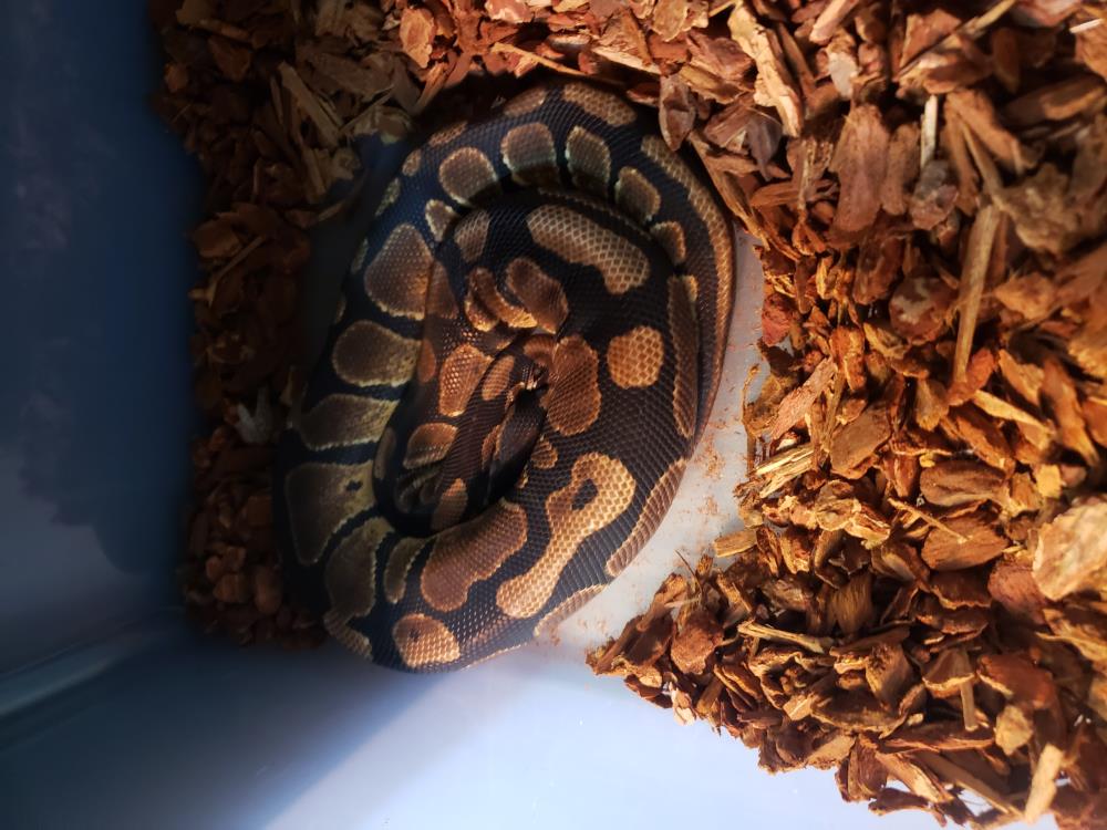 I am easy to handle with a calm demeanor - and a great eater! Just your typical lovely ball python. I love being held and checking out new things! Being nocturnal, I spend most of the day sleeping in my hide but I do like to come out in the evening to socialize. Sometimes I will still be awake in the morning, too!