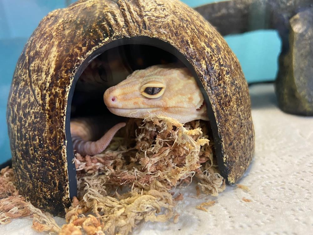 My foster family says 'Lemon Bear is a real gentleman, with a chill disposition and a beautiful yellow complexion. He is fairly calm with being gently handled and shows curiosity when action is happening around his enclosure - particularly in the evenings and mornings. :-) He is a good eater but prefers to be hand-fed and likes his meals to be wiggling!'